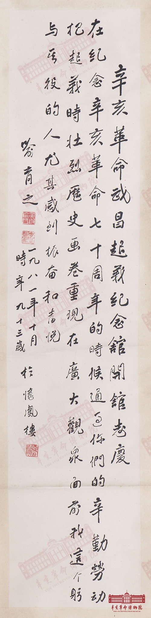 名称:喻育之为辛亥革命武昌起义纪念馆开馆志庆题词词轴