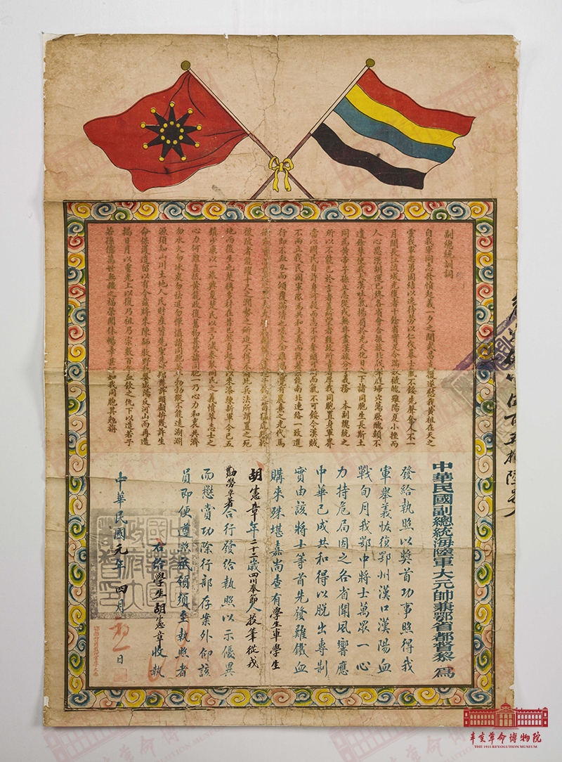 名称:黎元洪副总统颁给胡宪章的首功执照