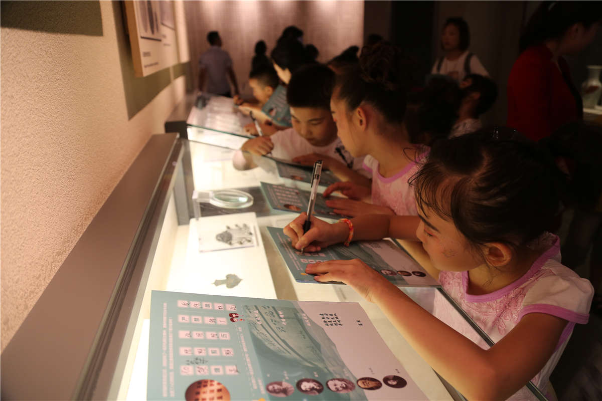 孩子们在手册的“引导”下参观展览