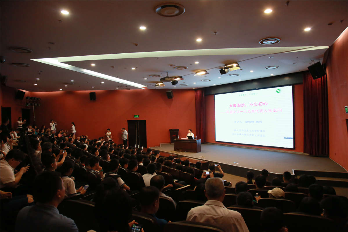 讲座当天,胡教授从98年前嘉兴南湖红船讲起,讲述了中国共产党出发时的初心、一大代表的人生走向以及他们坚持信念、牢记使命的奋斗之路。正值建党98周年之际,《大浪淘沙——回望中共一大及其代表人生走向》讲座使现场的观众接受了一次生动的党史教育和信念上的洗礼,更加坚定共产主义理想,坚持共产党的领导。