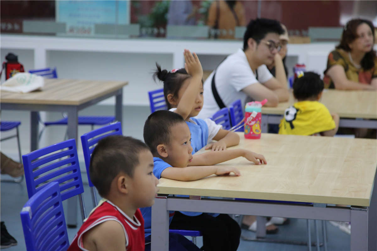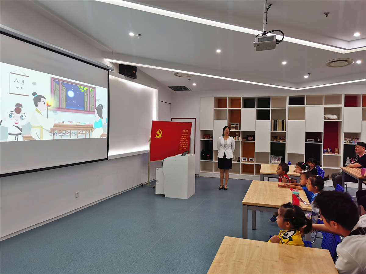 社教老师由一则灯谜将孩子们带入到趣味课程中,从中秋节的由来、习俗讲述到人文典故、诗词歌赋。老师讲的仔细,小朋友们听的认真。社教老师带领大家诵读了苏轼的《水调歌头》,让孩子们通过朗诵感受到深厚的中秋诗词文化。
