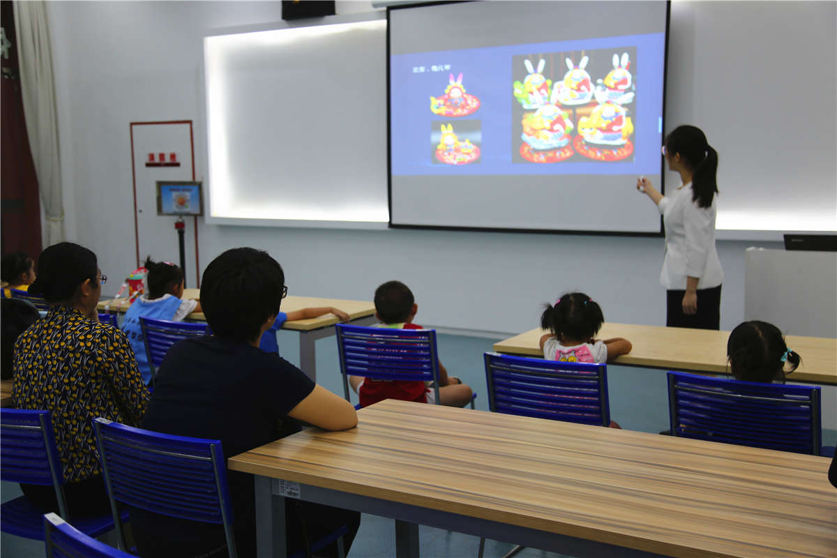 为了使孩子们更直观的了解传统文化,社教老师特别准备了知识短片,让小朋友们了解中秋节别称、习俗、传说等...当老师问道到中秋别称和习俗的时候,小朋友们络绎不绝的说到八月节、团圆节,吃月饼、赏桂花、赏月...个个如数家珍。讲到中秋节传说除了人们熟知的“嫦娥奔月”以外,还有吴刚伐桂、玉兔捣药等...其中玉兔捣药就跟今天的创意手工“兔儿爷”息息相关了。