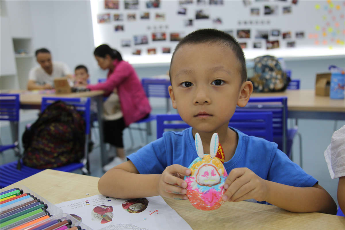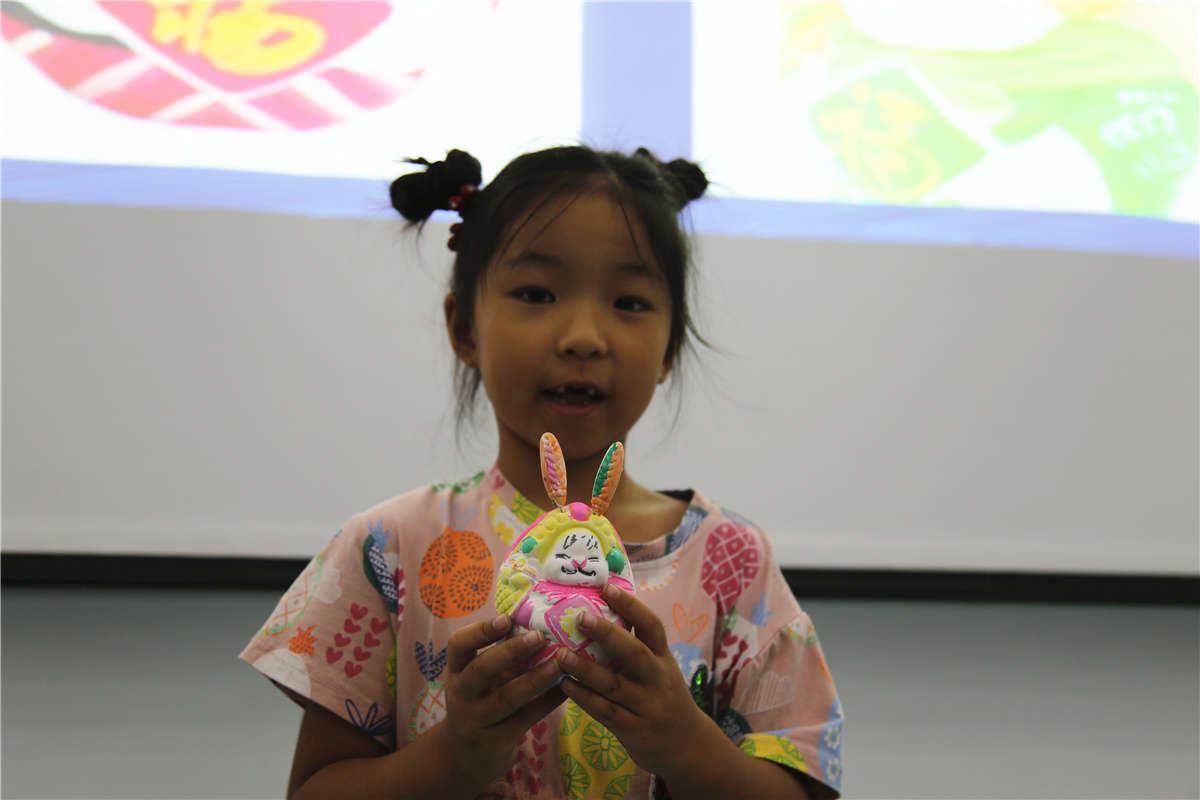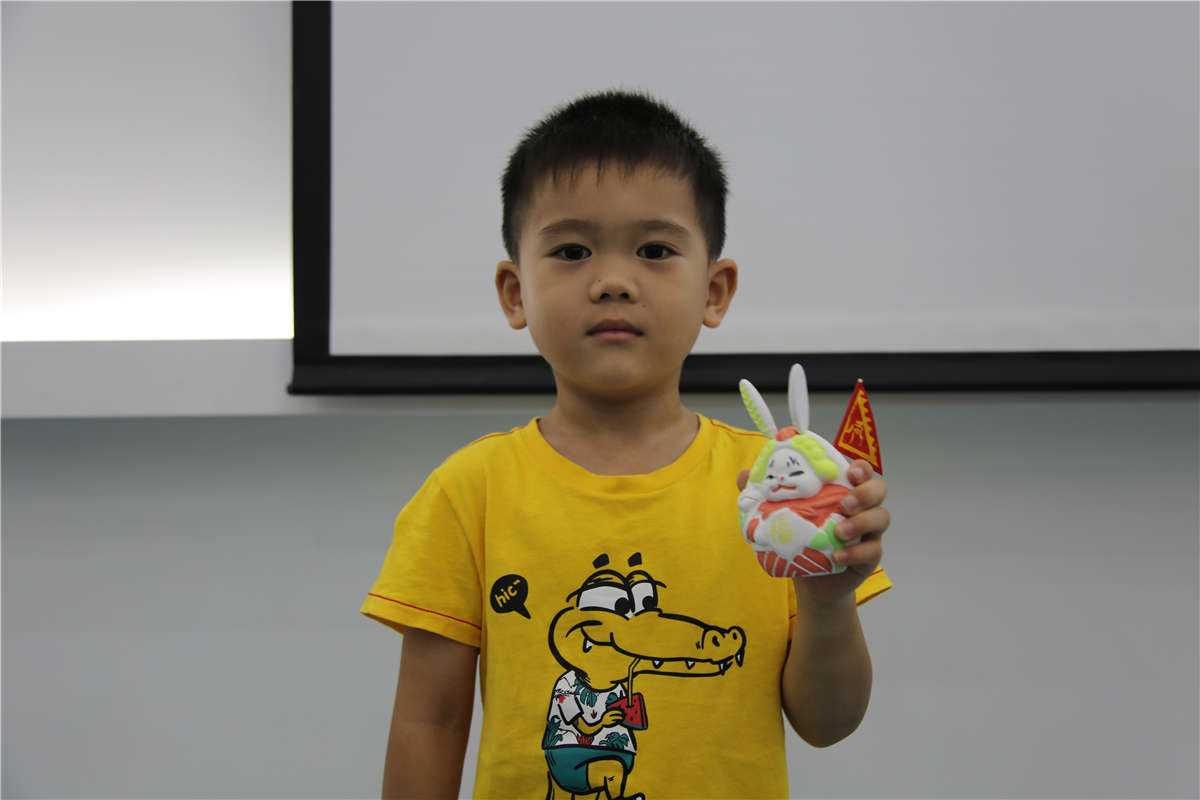 下面就是小朋友最期待的创意环节了,结合“玉兔捣药”的传说开始描绘属于自己的中秋时令玩具“兔儿爷”吧!