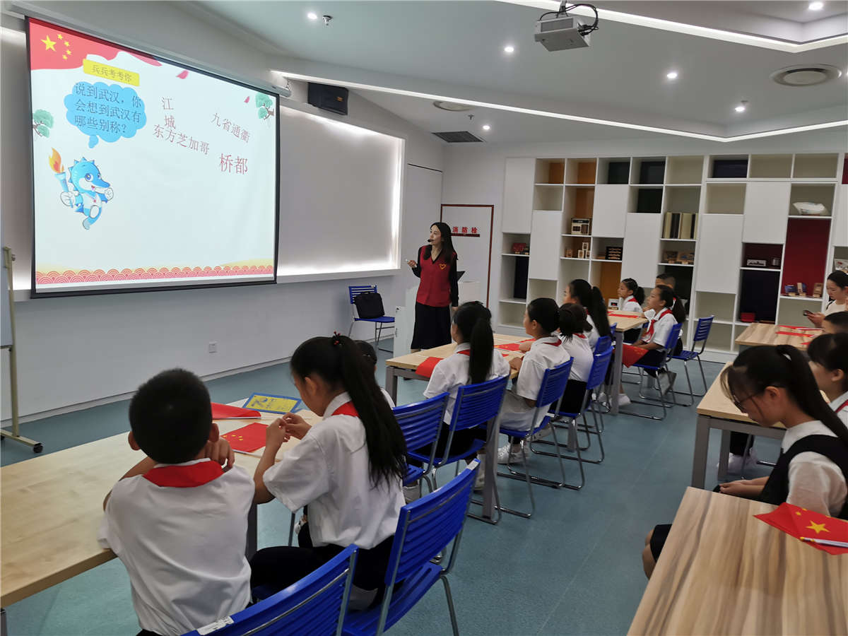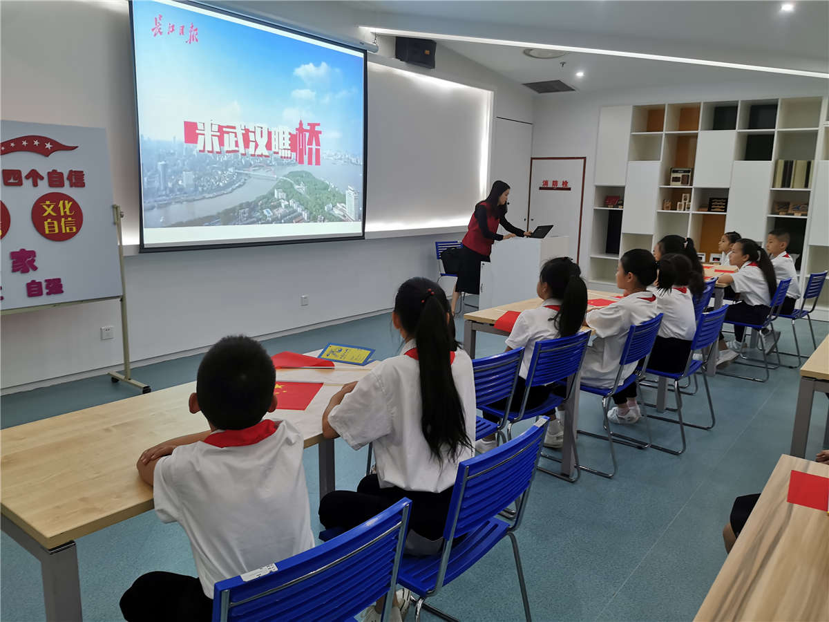 我馆博爱学堂还举办了特色社教活动“‘桥’见武汉”。志愿者为来自首义路小学的同学们讲述了武汉发展70年的精彩瞬间。在祖国70年华诞即将到来之际,同学们感受到祖国日新月异的时代进程,激发了他们的爱国热情。