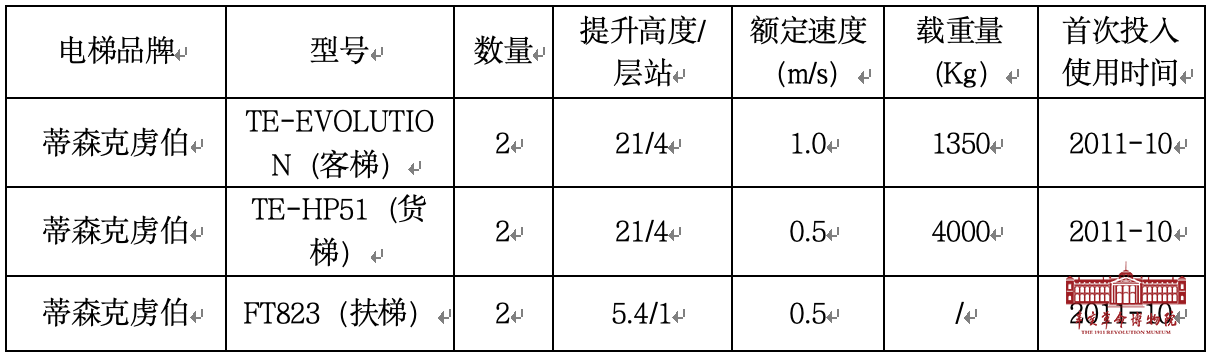 采购项目具体内容 | 辛亥革命博物院目前共6台电梯(详见下表),从2011年10月投入使用,目前电梯使用情况良好: