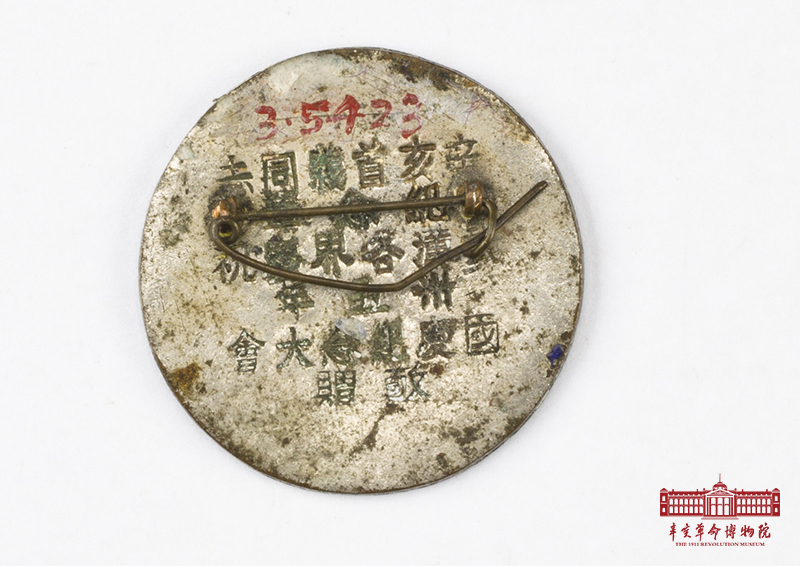 辛亥首义同志纪念章,又称“双十”字章,红铜胎景泰蓝徽章,正圆形,别针佩戴。徽章蓝底上有黄色中国地图,地图左侧一个红色“艹”字,为寓意武昌起义纪念日(十月十日)的双十标志。地图正中示武昌处贯穿一面青天白日满地红民国国旗。背面阴刻“工八营”、“辛亥首义同志纪念章”、“武汉各界庆祝卅五年国庆纪念大会”、“敬赠”字样,其中“工八营”三字字体有别,为后来加刻。 该章均为辛亥首义同志会会员佩戴,是徽章所有者参加辛亥革命武昌起义的重要实物证明。