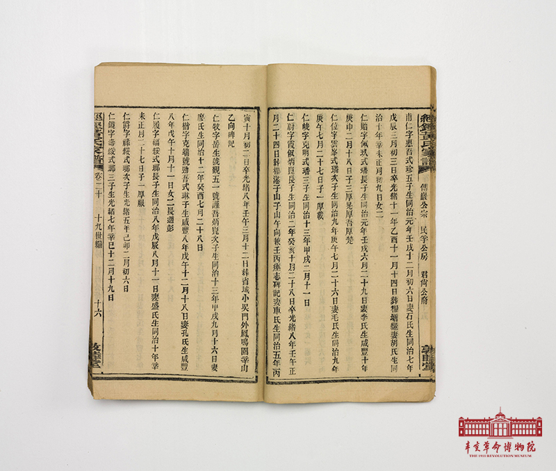 记录黄兴家世的《经铿黄氏家谱》,线装,毛边纸木活字印刷。是纂修于清光绪壬辰(1892)年的七修本,共30卷,由黄沄、黄锡焘主稿。《经铿黄氏家谱》中“经铿”为地名,位于今湖南省长沙县。黄兴为经铿黄氏第十九世。《家谱》正文“世表”和“世编”均有关于黄兴的直接记载。卷二“世表”十九世栏列有黄兴的名、号,卷二十“十九世编”记述有其名、字、号、排行、生辰、妻室等。