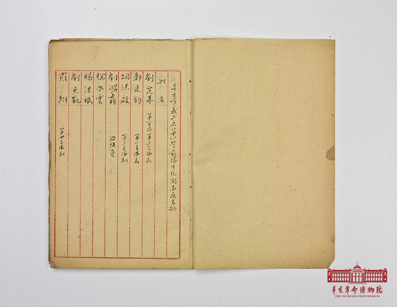 辛亥首义工兵第八营生亡同志花名册,纸质,线装本。花名册划分为四部分,分别列出了工兵第八营前队、左队、右队、后队中尚在世的党员名单、参加1911年10月10日晚起义的尚在世的同志名单、参加10月11日作战尚在世的同志名单、阵亡和已病故党员名单、参加10月10日晚起义死者和阵亡同志名单,阵亡同志及有职务的同志在名单后标注。前队共列131名,左队共列131名,右队共列110名,后队共列136名(后队党员及参加10月10日晚起义同志未列入)。