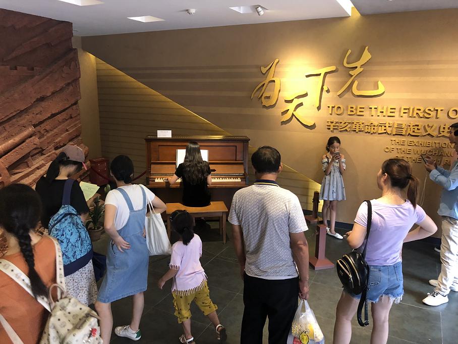 近日,我馆向武汉钢琴博物馆租赁了一架1911年(辛亥革命武昌起义爆发之年)美国纽约生产的施坦威钢琴,安放在《辛亥革命武昌起义史迹陈列》展览的序厅一角。安排专业演奏人员在展厅开放时间内定时演奏。目前的演奏安排是,上、下午各两场,全天共四场,每场演奏时间不超过30分钟。演奏曲目以中国风和西方名曲为主,讴歌先烈的光荣,礼赞时代的进步。钢琴演奏与陈列展览互为补充,相得益彰。试运行以来,深受观众的好评。到访观众流连忘返,赞不绝口。
