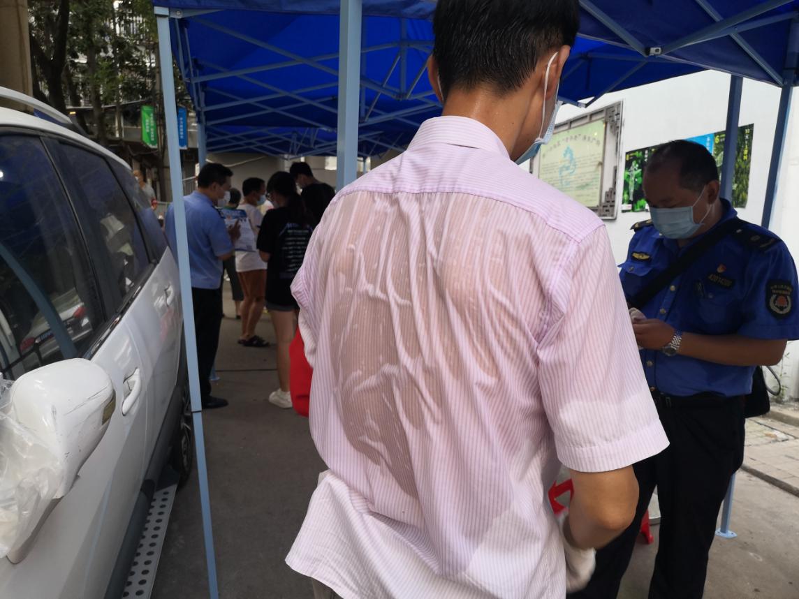 8月4日下午,我馆下沉党员鹿勇在太阳下坚守3个多小时,维持现场秩序,安抚居民情绪。