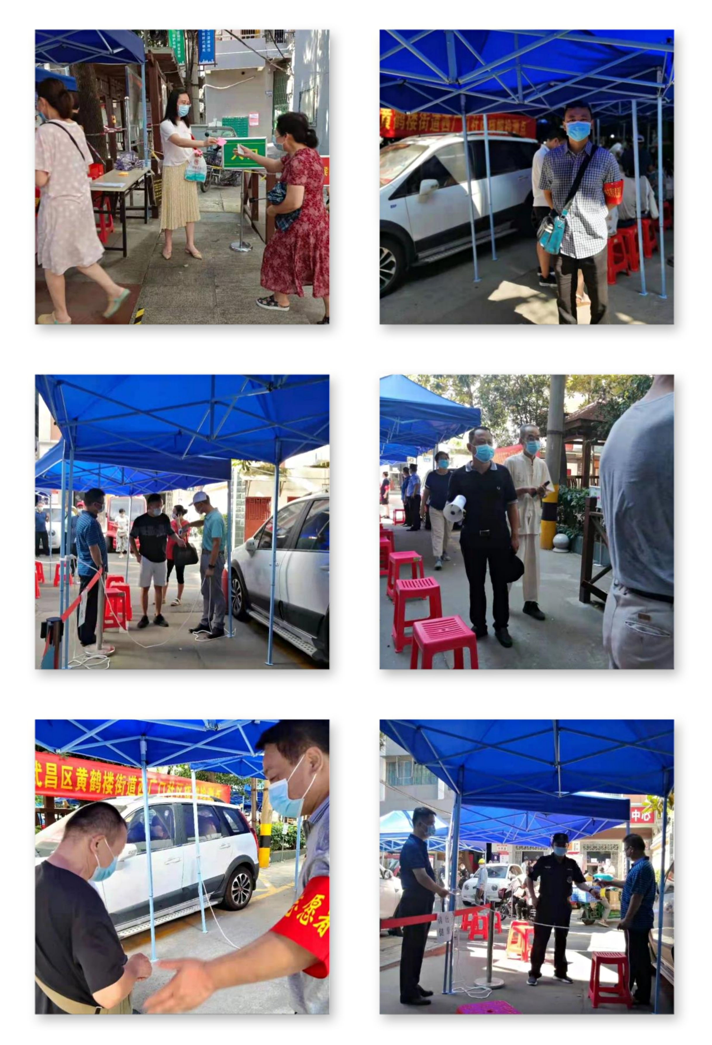 8月3日下午,我馆接到武昌区黄鹤楼街道西厂口社区支援请求,馆党委第一时间发布下沉社区参与疫情防控通知,组织我馆26名党员驰援社区。当天夜里,在副馆长黄春华带领下,我馆4名党员到社区报到,协助社区做好核酸检测工作。为确保核酸检测任务顺利完成,大家战高温、斗酷暑,充分发挥党员先锋模范作用。我馆党员入户宣传核酸检测通知、牵起警戒线维持现场秩序、发放号码牌引导居民有序进行检测。经过2天3夜奋战,我馆协助社区累计完成7500名居民核酸检测工作。