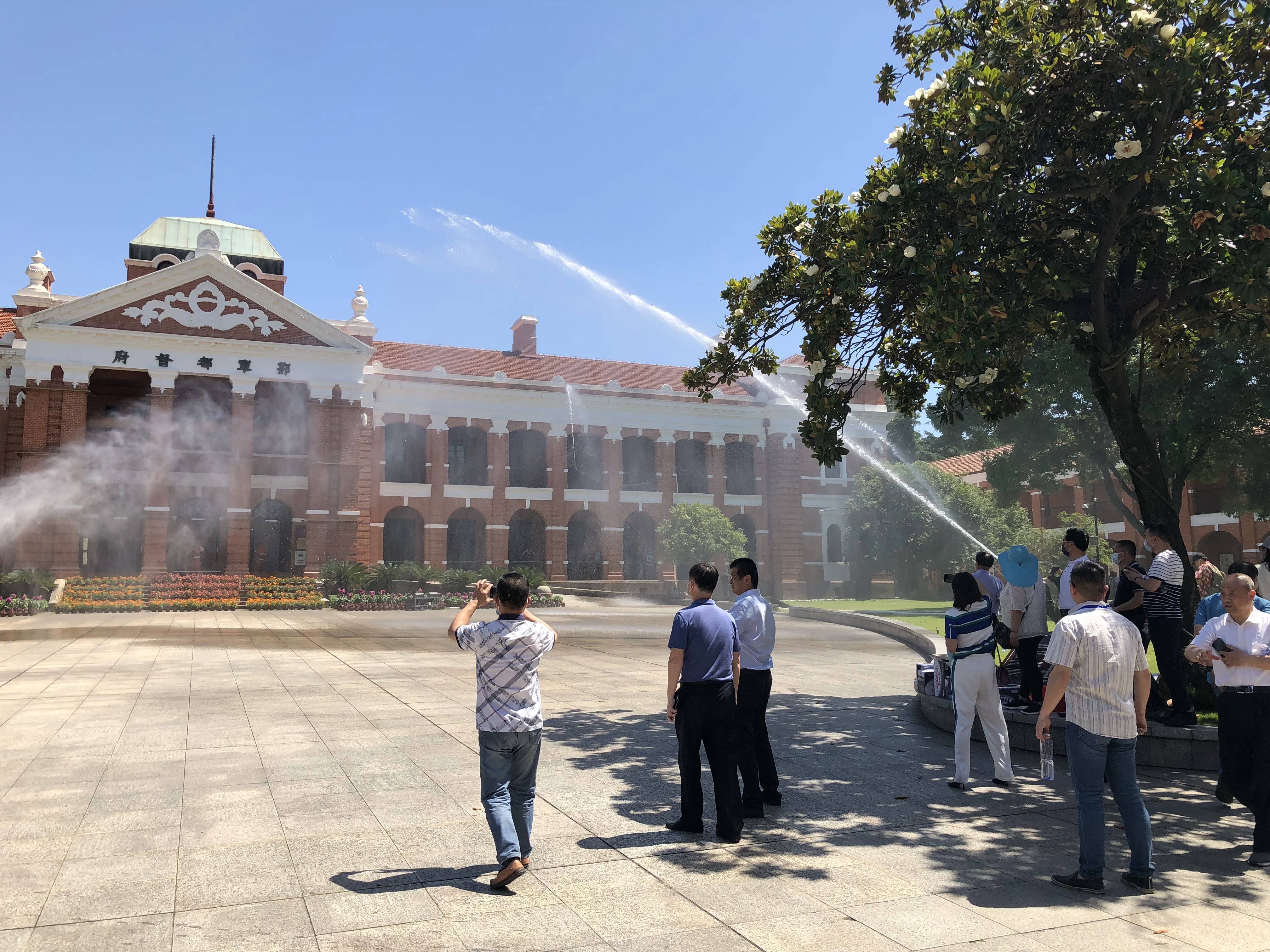本次教学观摩为模拟我馆旧址突发火灾的应急处置。演习开始前,馆长魏德勋代表我馆致辞,热情欢迎培训班一行来我馆观摩交流。演练开始后,火警警报拉响,我馆消防队迅速响应,按照消防应急预案与灭火流程进入实战,消防车、消防栓、消防水泵等在一分钟内完成启动、就位、灭火全流程,消防安全演练取得圆满成功。