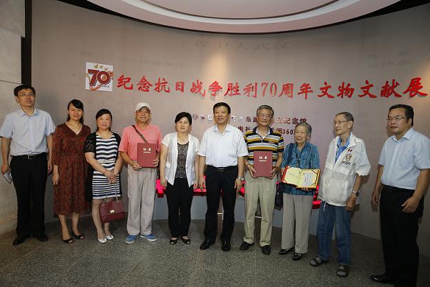 湖北省政协副主席、省民革主委郑心穗出席了本次开展暨接收捐赠活动,并宣布开展。省文物局赵令珍副局长在活动中致辞,阐述了举办纪念抗日战争胜利70周年展览的意义,感谢各方对举办本展览的支持和帮助。