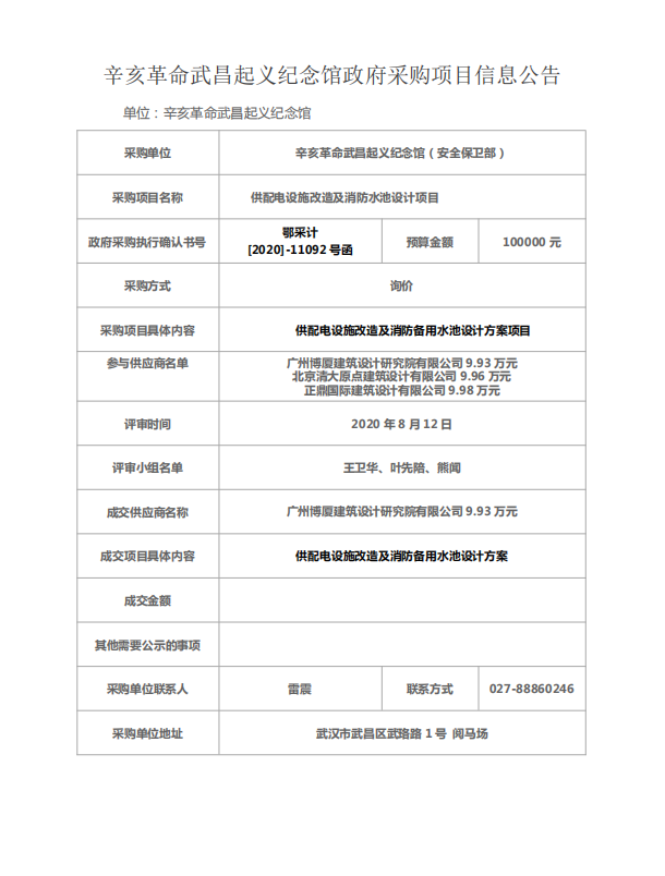 辛亥革命武昌起义纪念馆政府采购项目信息公告