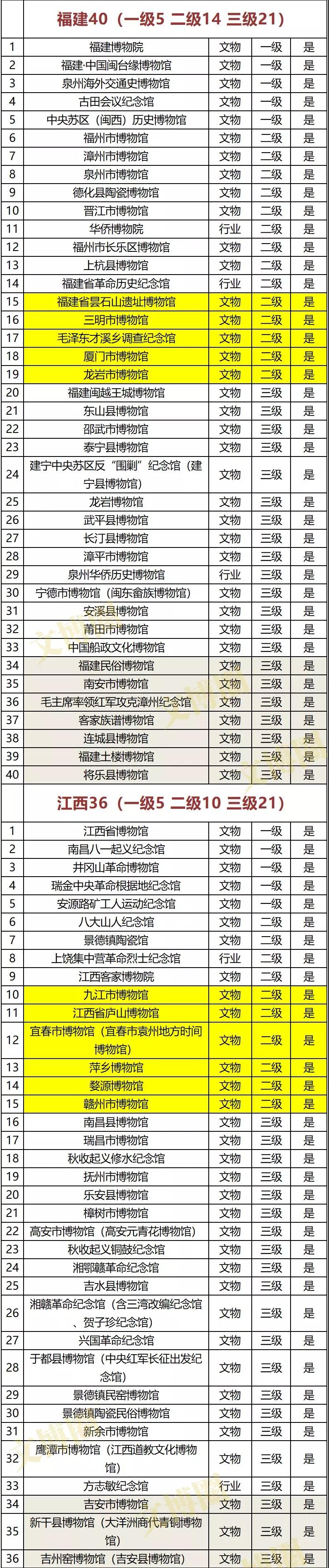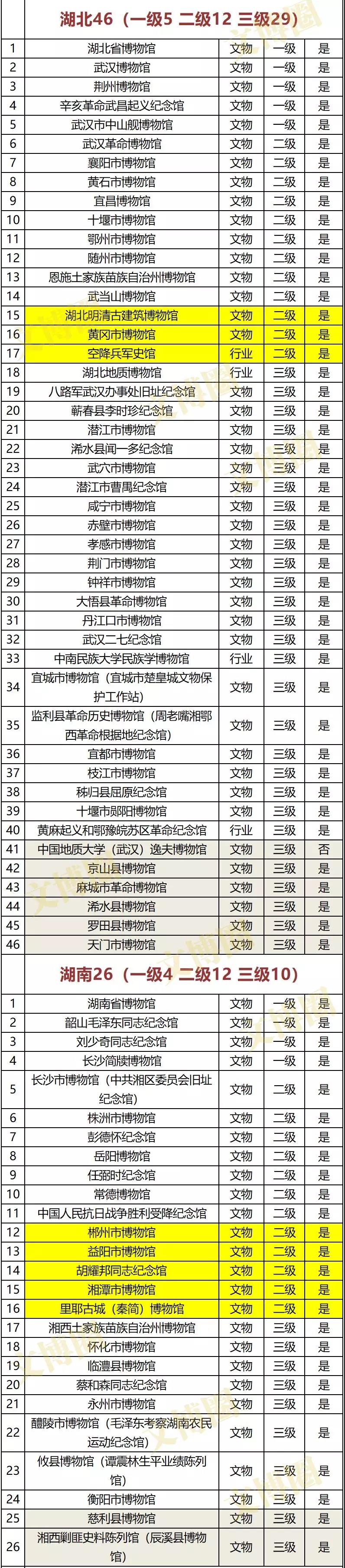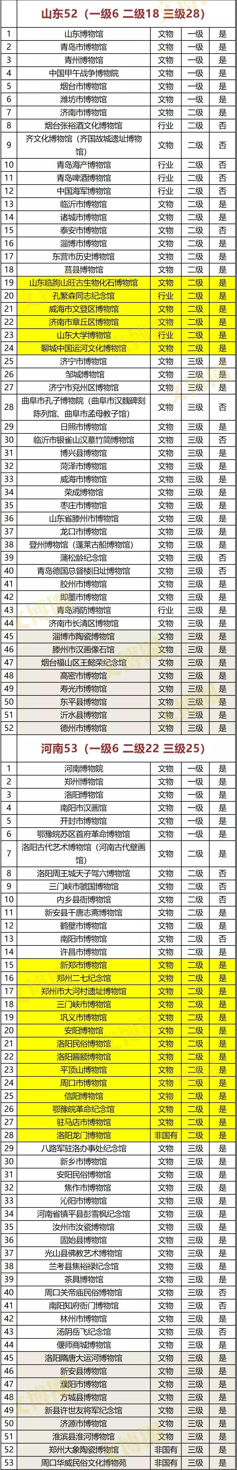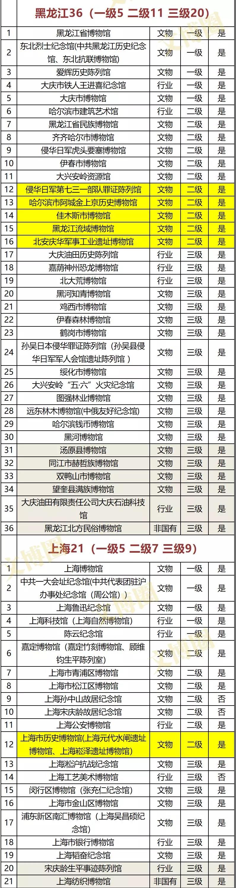 注:黄色底为新增二级博物馆、灰色底为新增三级博物馆