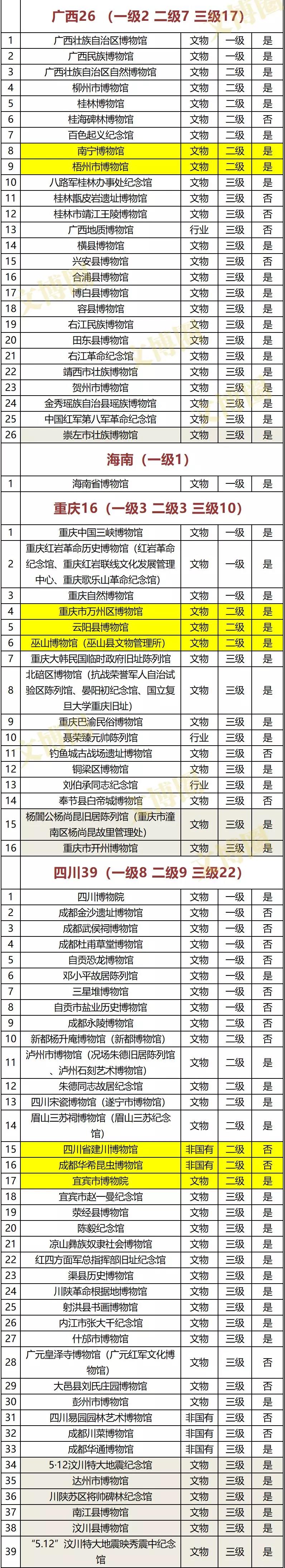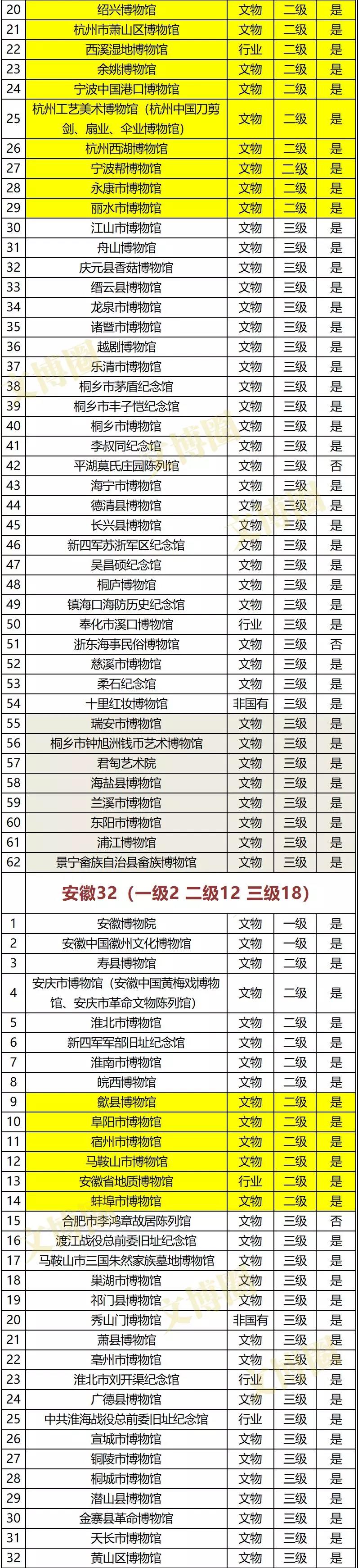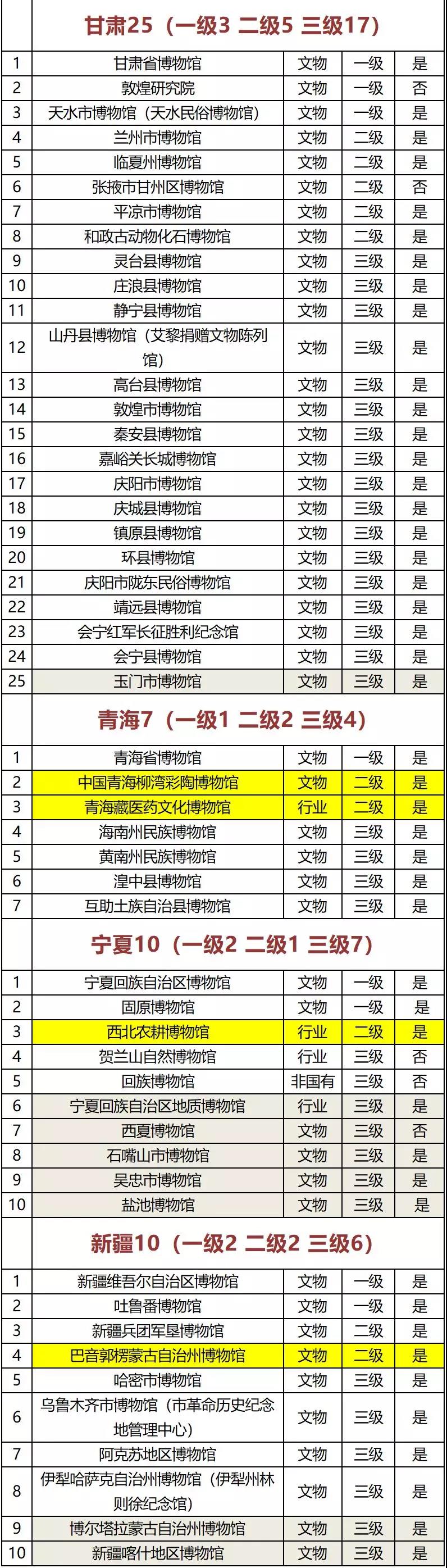 注:黄色底为新增二级博物馆、灰色底为新增三级博物馆