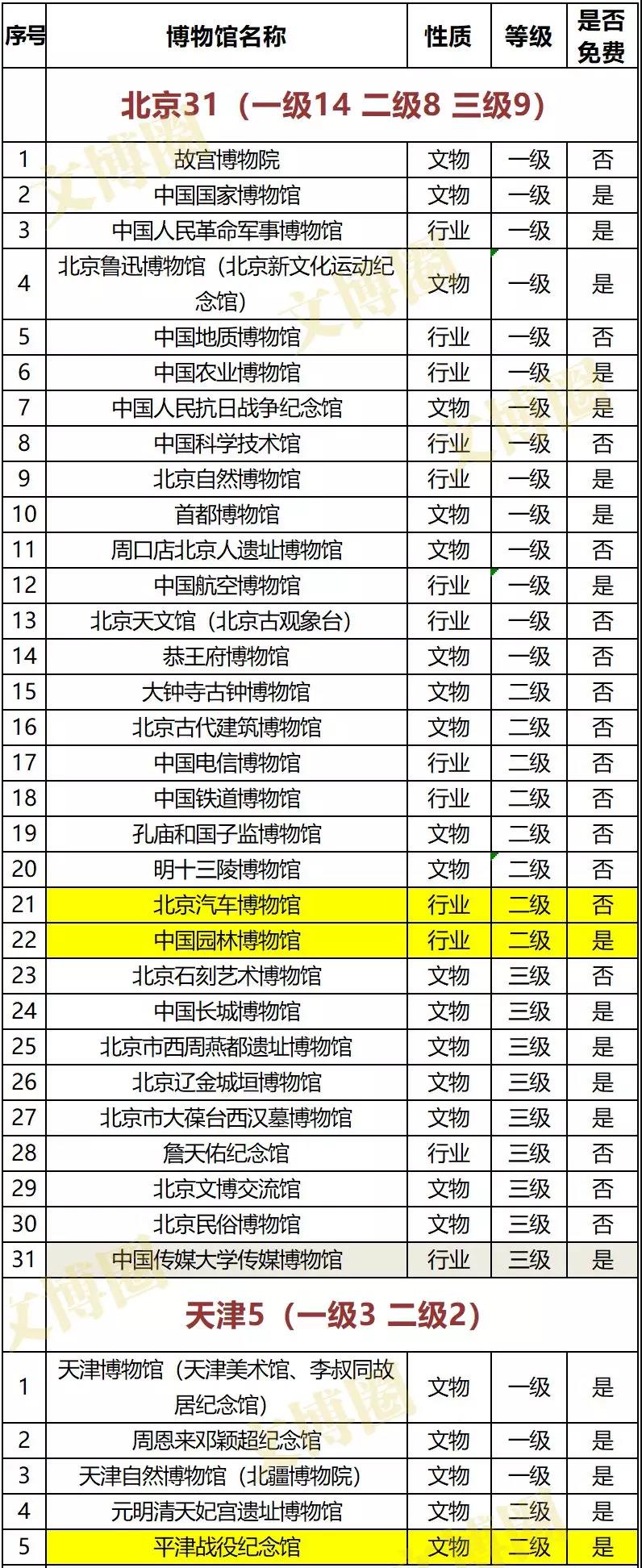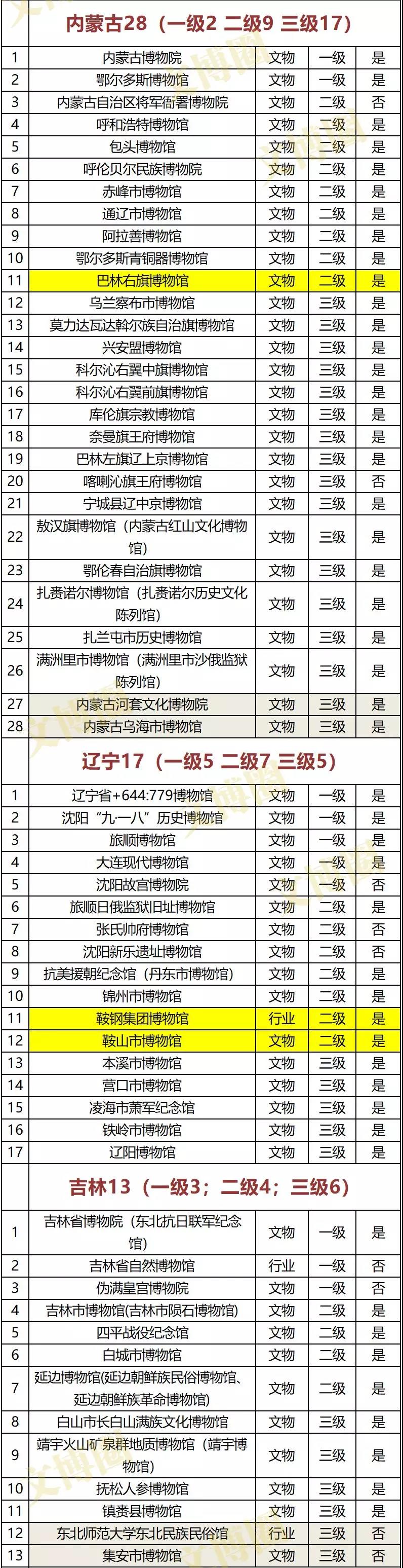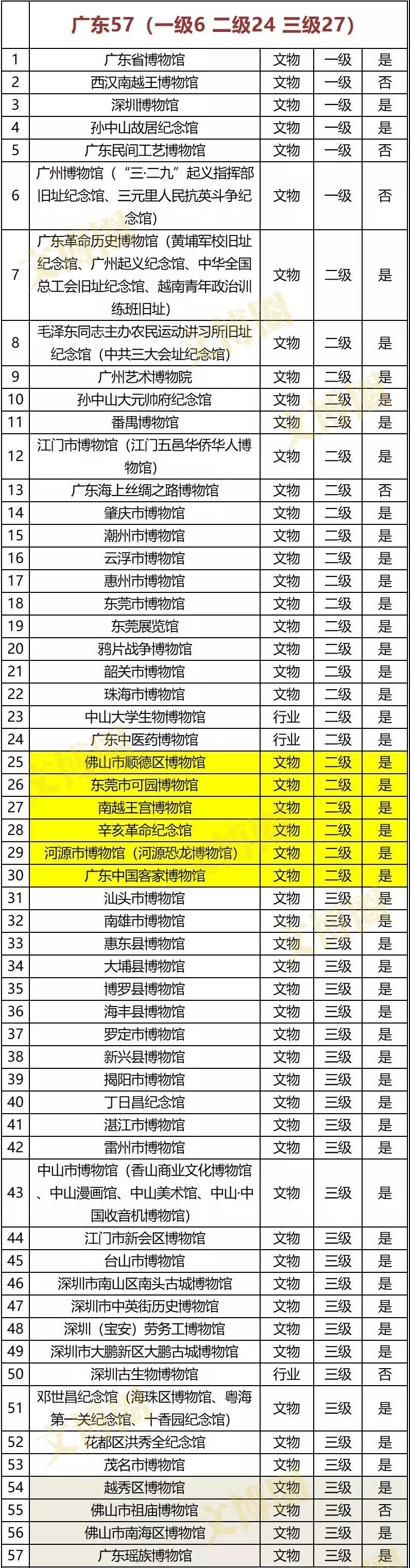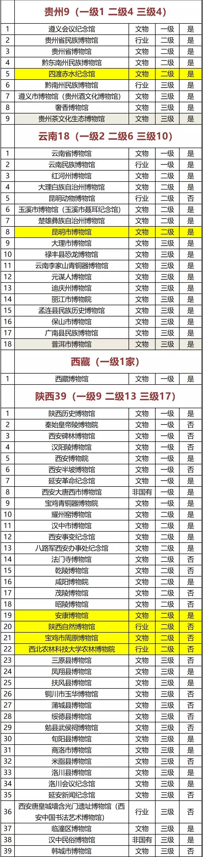 注:黄色底为新增二级博物馆、灰色底为新增三级博物馆