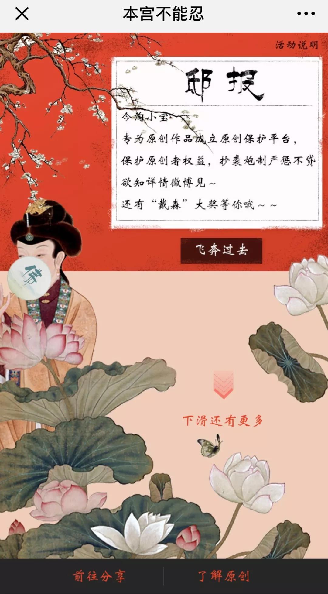2018天猫双11倒计时13天,故宫淘宝与阿里原创保护平台联合推出一款创意H5动画,再次表明了双方共同从源头保护品牌创意的决心。