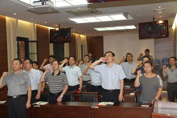 会议开始前,每名党员都向支部缴纳了七月党费。会上,全体党员重温入党誓词,集体诵读《党章》中关于“党员义务”的有关内容,收看中共中央庆祝中国共产党成立95周年大会实况,认真聆听了习近平总书记的重要讲话。随后,魏德勋同志传达了省委书记李鸿忠在湖北省庆祝建党95周年大会上的讲话精神,并以普通党员的身份畅谈了自己的学习感想。