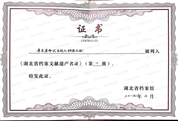 《辛亥革命武昌起义档案文献》被列入第一批湖北省档案文献遗产名录