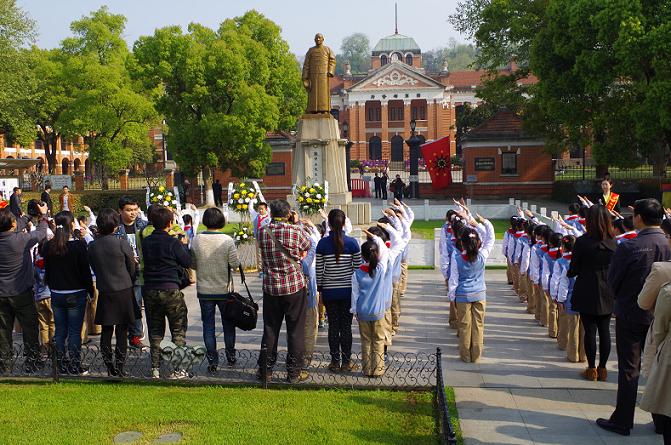 今年是中国民主革命的伟大先行者孙中山先生诞辰150周年。为继承和弘扬孙中山先生的爱国精神和振兴中华的伟大理想,进一步激发全社会同心同德实现“中国梦”,4月1日,我馆干部党员与西厂口社区、首义广场管理处、黄鹤楼公园管理处党员代表以及武汉市武昌寄宿实验小学师生代表共200余人举行了向孙中山铜像敬献花蓝系列活动。