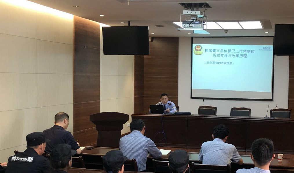 为提高我馆全体职工及保安队的治安保卫水平和安全防护能力,将文物安全工作落实到每个责任人、每个岗位,4月24日我馆邀请武昌区公安分局内保大队张建警官来馆开展《单位内部治安保卫知识》讲座。