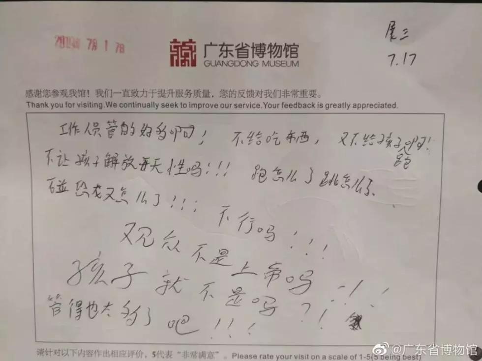 近日,一张广东省博物馆的观众留言本照片在网上引起热议