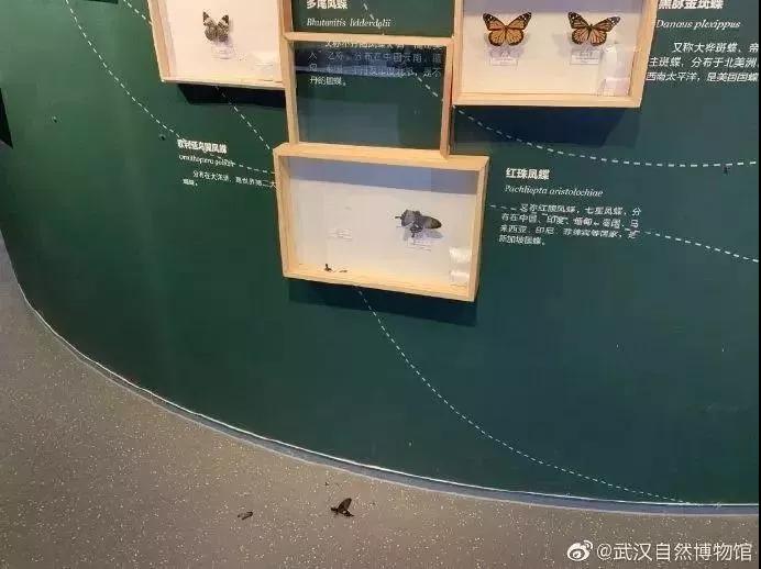 几天前,武汉自然博物馆也在微博中曝光:约400元一只的蝴蝶标本,被小朋友们破坏掉玻璃展盒、撕扯掉翅膀。