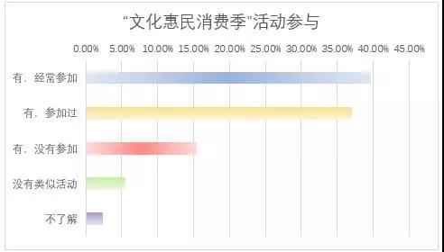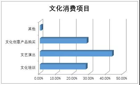 调查结果显示,对于文化消费的花销主要用于是“文艺演出”,占比40%以上;其次为“文化创意产品购买”和“文化培训”。