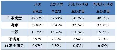 数据显示,2019上半年受访者文化消费场馆满意度、活动内容丰富性、服务质量等方面的评价都较高,分别达到82.8、86.6、85.5的平均满意水平,其中,受访者对活动内容的丰富性最为满意。