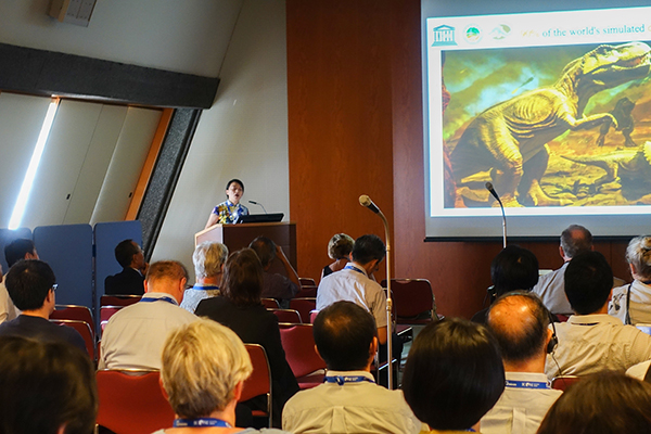 自贡恐龙博物馆李毅发表《自贡恐龙博物馆——人与自然跨越亿万年的文化桥梁》主题演讲。介绍了自贡恐龙博物馆作为文化桥梁,是如何起到连接作用的。她分享了博物馆建馆30余年来利用藏品,致力于服务公众、保护研究,通过举办特色活动、提供主题展览,为公众提供了解亿万年前生灵的场所,还逐步以此为核心,将大自然的馈赠,以不同的方式给人们带来美好生活和文化享受。此外,博物馆的研究成果也造福地方文化经济,全球90%仿真恐龙都是自贡制造;每年春节,自贡都举办“自贡国际恐龙灯会”。而博物馆周边也建立了恐龙村,促进了地质文化建设,同时让老百姓了解自然,将这种文化和自然连接起来,让公众了解过去,领悟现在和未来。