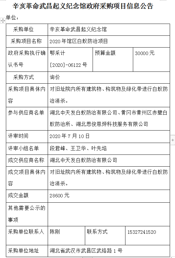 辛亥革命武昌起义纪念馆政府采购项目信息公告